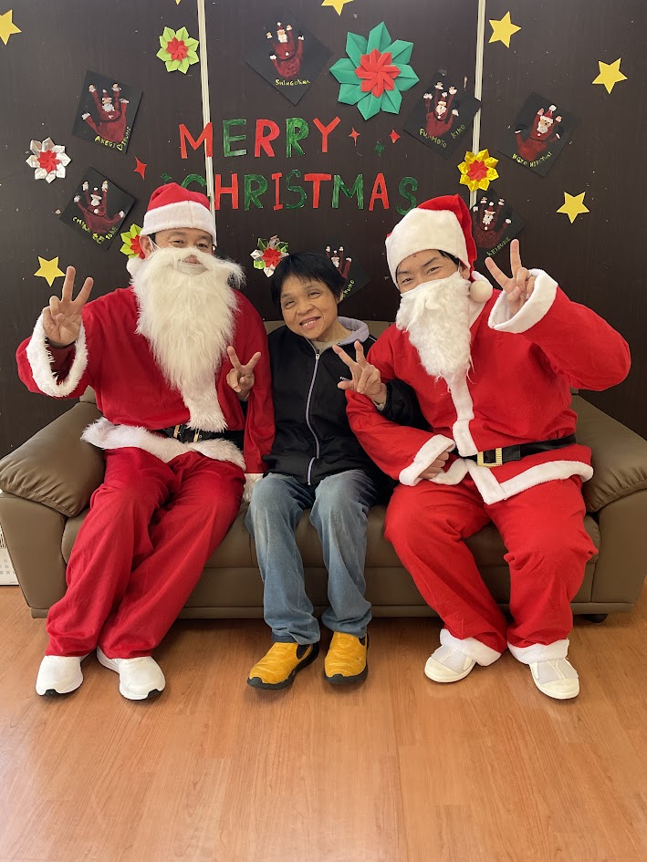 今年もサンタさんからのプレゼントがあり、一人一人受け取ると笑顔が見られサンタさんと一緒に写真撮影をしました🎅