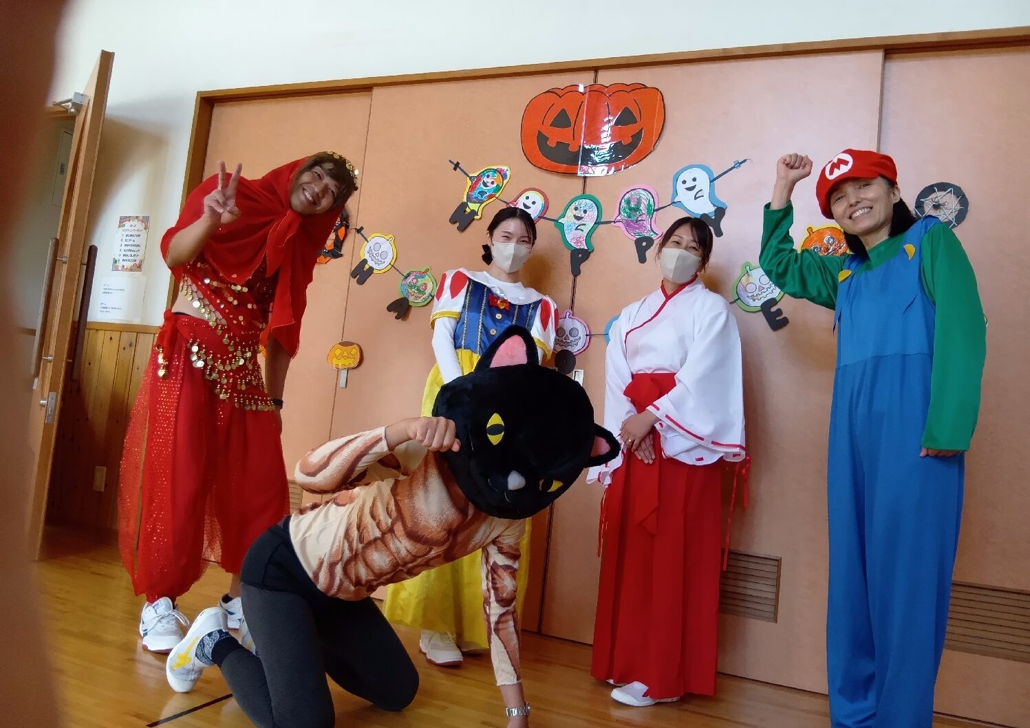 イベント当日は、スタッフも学生さんも子ども達もハロウィンの仮装で参加し、会場はとてもにぎやかに。子どもたちからも「すごい!」「かわいい!」と大好評!中には「こわい!」と言う子もいましたが、みんな大喜びでした。