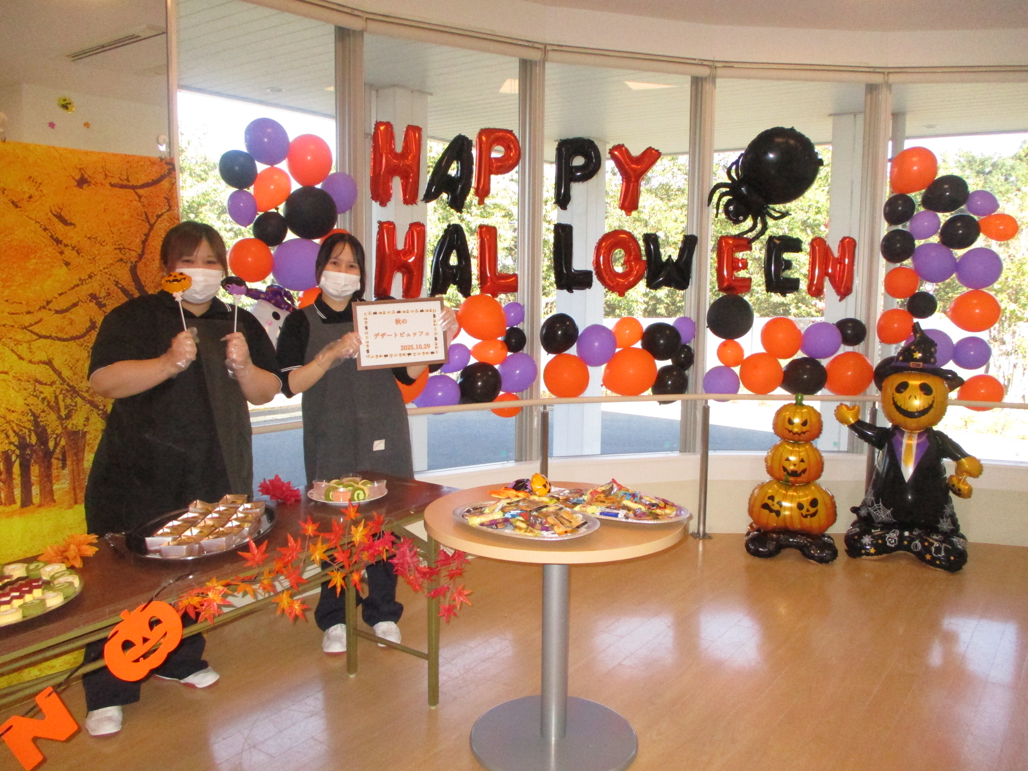 ハロウィン仕様や秋仕様に飾り付けをして色とりどりのケーキやゼリーを並べました🍰