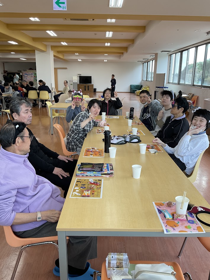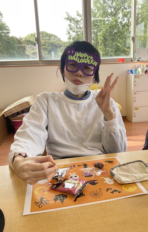 創作活動で作ったかぼちゃオバケやコウモリを飾り付け、