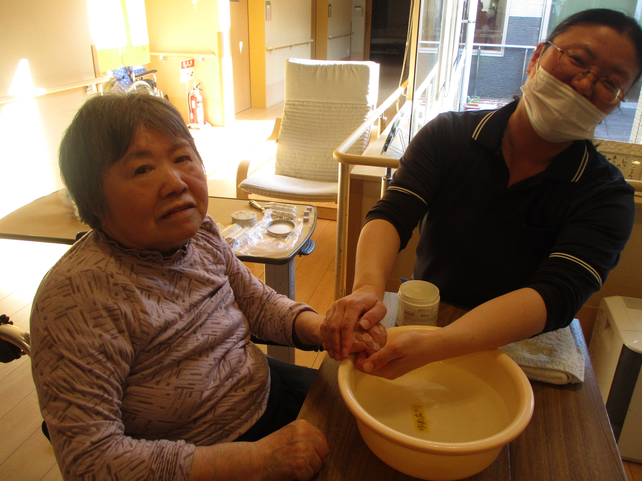 先日、入居者の皆様のハンドケアを行いました。
