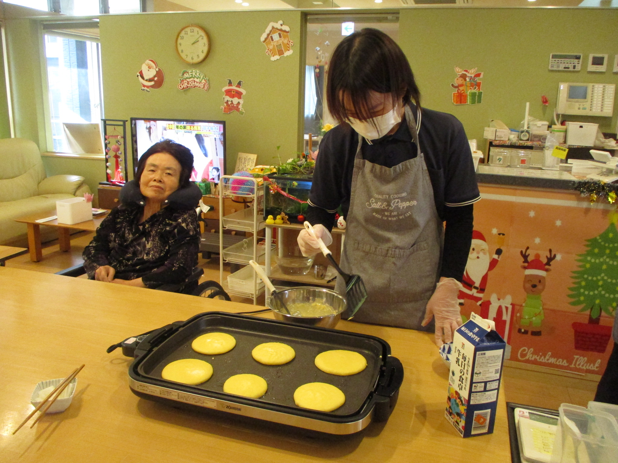 ホットプレートで生地を焼くと、ユニット中にいい香りが…💕