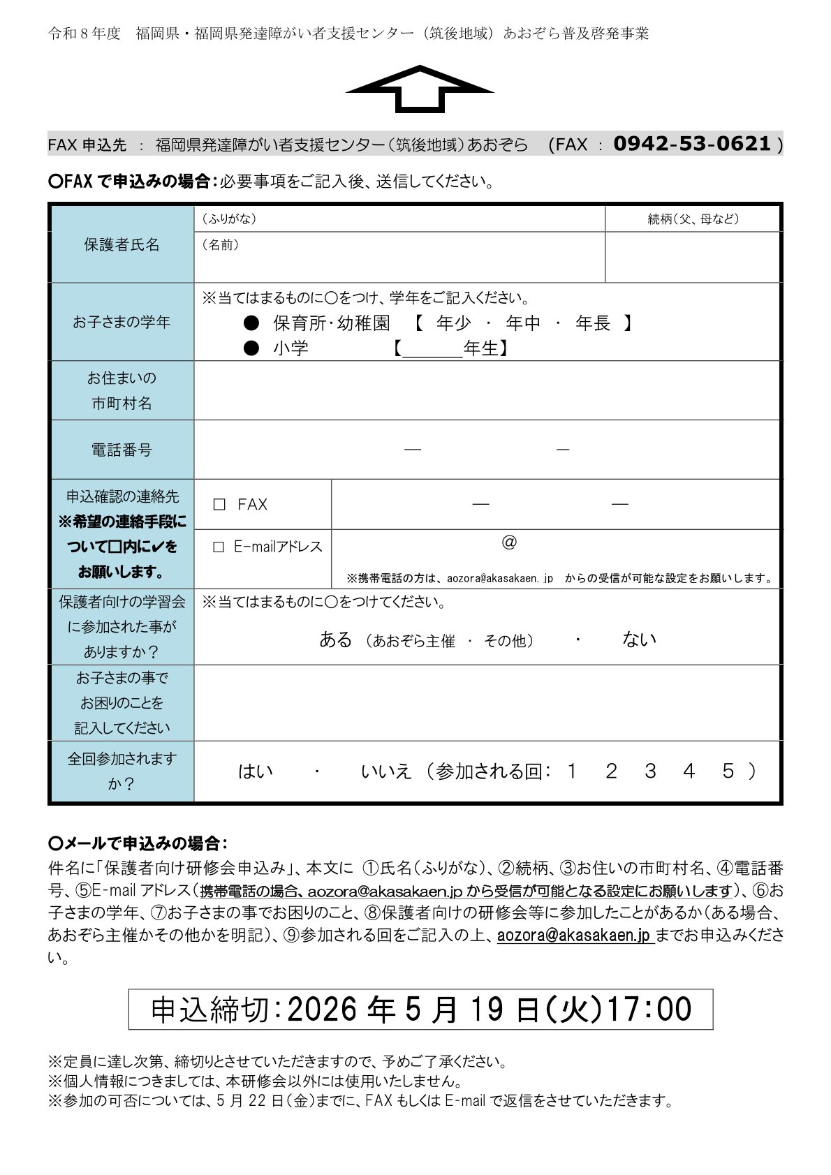 ※なお、あおぞらの管轄地域(うきは市、大牟田市、大川市、大木町、小郡市、久留米市、大刀洗町、筑後市、広川町、みやま市、柳川市、八女市)にお住まいの方を優先とさせていただきます。ご了承ください。