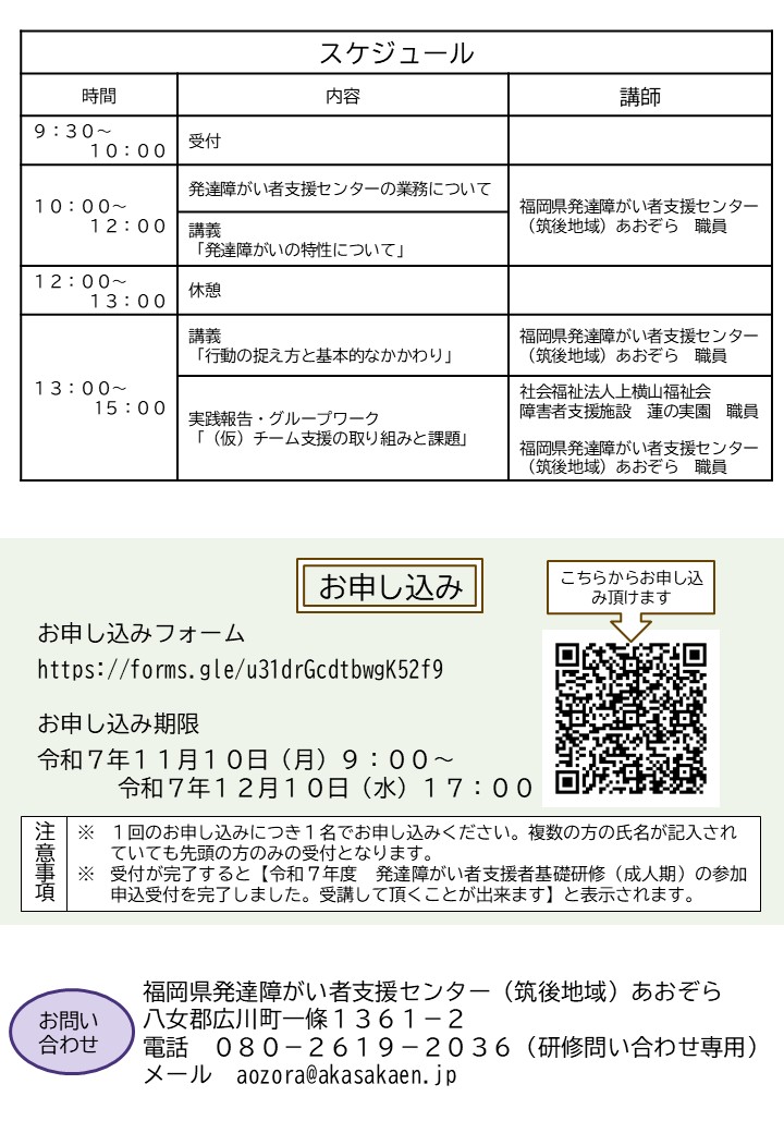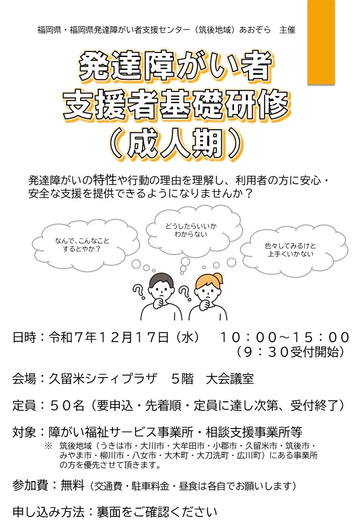 福岡県・福岡県発達障がい者支援センター(筑後地域)あおぞら主催